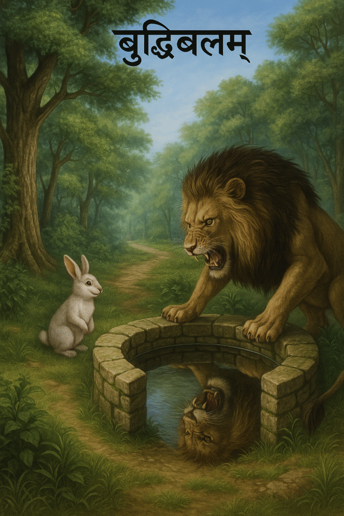 शेर प्रतिदिन जंगल के पशुओं का वध करता था। एक चतुर शशक बुद्धि का प्रयोग कर उसे कुएँ में उसके ही प्रतिबिंब से लड़वाकर गिरा देता है। यह कहानी सिखाती है कि बुद्धि हमेशा बल से श्रेष्ठ होती है।