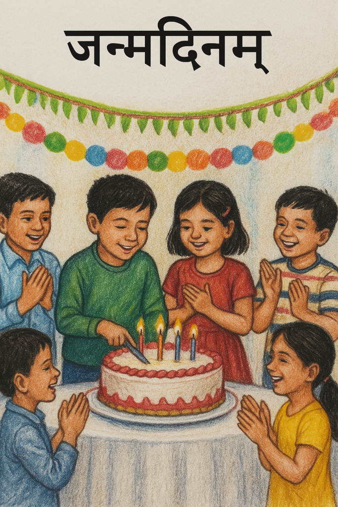 संस्कृत पाठ जन्मदिनम् – कक्षा 5 के लिए सारांश, शब्दार्थ व प्रश्नोत्तर इस पाठ में सुरेखा के जन्मदिन के अवसर