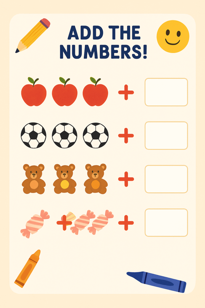 📚 जोड़ सीखो – Worksheet 📚 जोड़ सीखो – Worksheet 🔢 अपने दोस्तों को भी सिखाओ! प्रश्न 1: चित्र देखकर