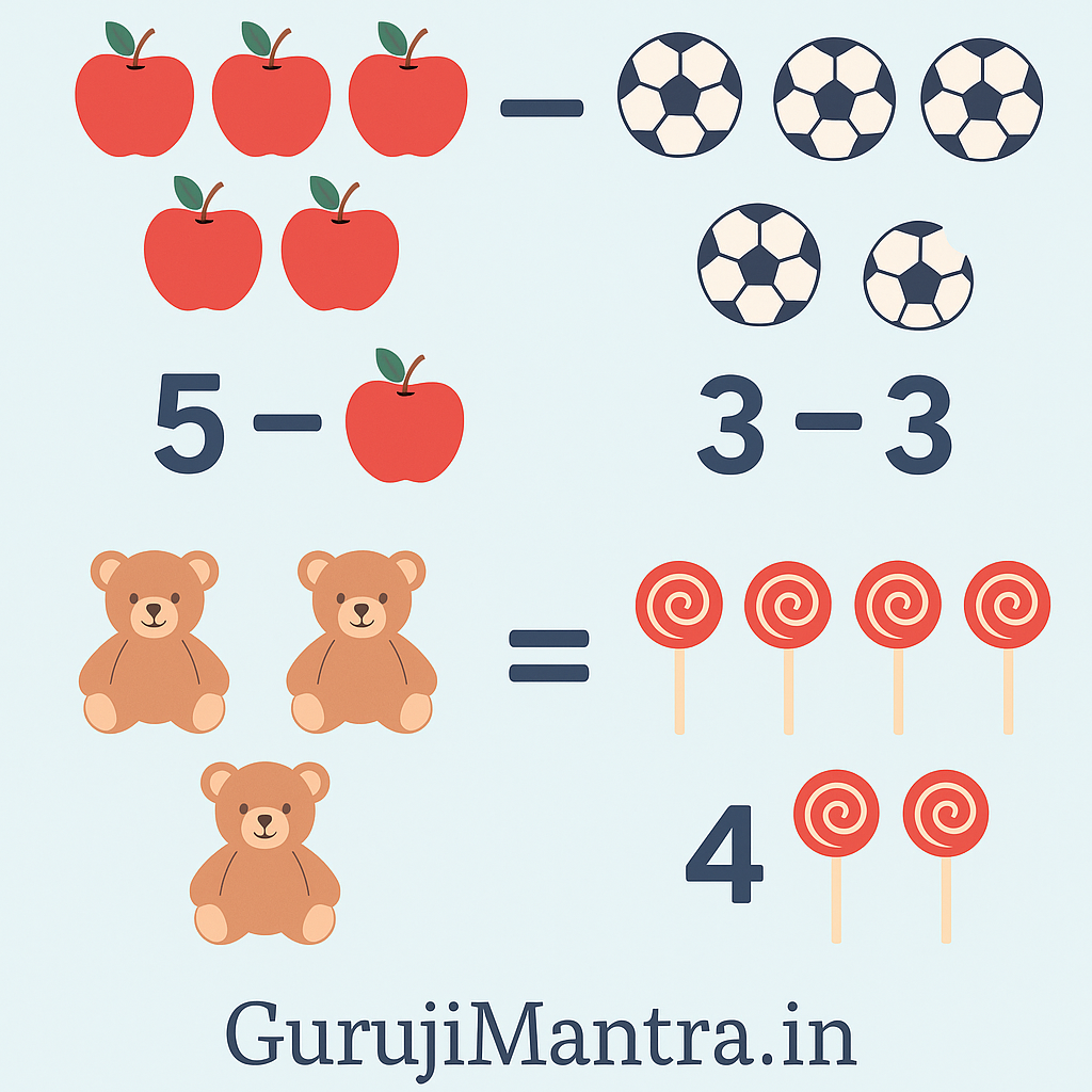 ➖ घटाव सीखो – Worksheet ➖ घटाव सीखो – Worksheet 🔢 subtraction का अभ्यास करो! प्रश्न 1: चित्र देखकर घटाव