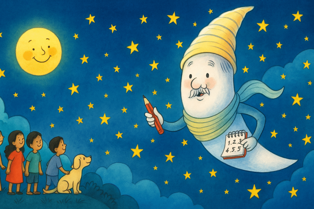 एक दिन चंदा मामा ने आकाश में तारों की गिनती शुरू की।
