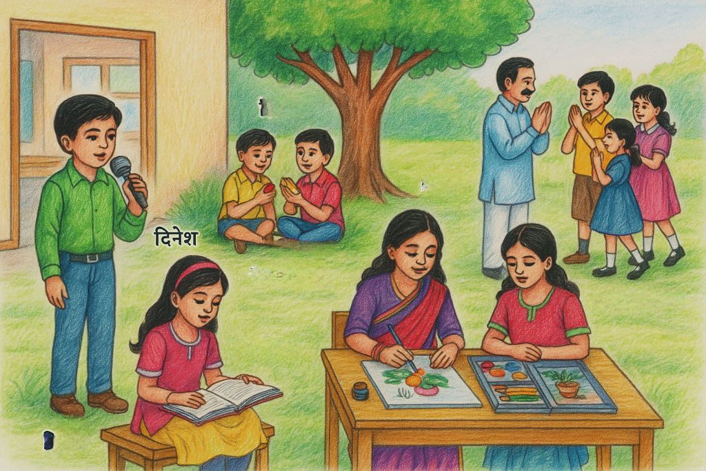 नीति (हिन्दी): मित्रों के साथ मिलकर सीखना और गुरुजनों का सम्मान करना हमें ज्ञान और संस्कृति में आगे बढ़ाता है।
