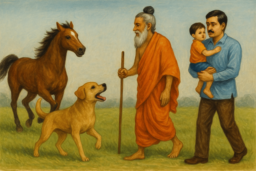 साधुः गच्छति। — साधु (एक) चलता/जाता है।